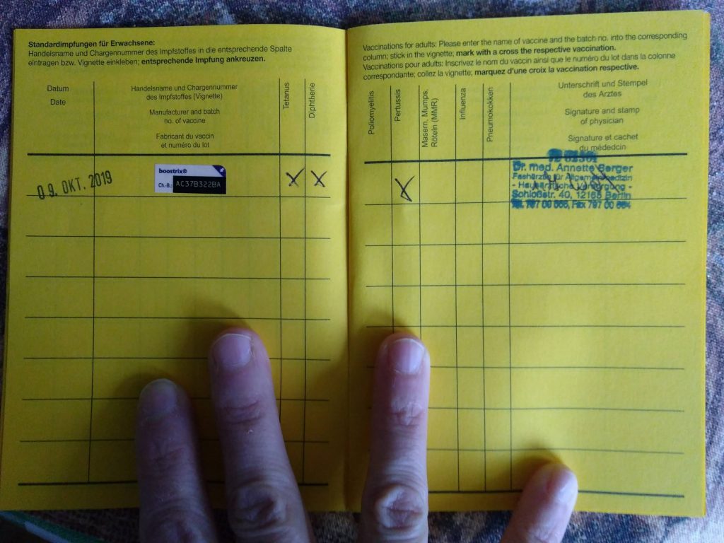 Finding a paediatrician with space for more patients proved impossible for me to do on my own. So I made an appointment with a normal GP and made a list of things of all such things that I needed help with. When I mentioned the vaccinations, she asked me whether I had a vaccination record. I was gobsmacked. I don’t – certainly not one that is complete. And the last time I was vaccinated against anything was more than 20 years ago.